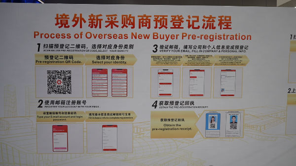 Before arriving in Guangzhou, overseas buyers can fill in the pre-registration information to obtain a receipt. This receipt acts as a "fast pass" for ID badge collection, allowing you to skip long queues at the on-site registration offices.