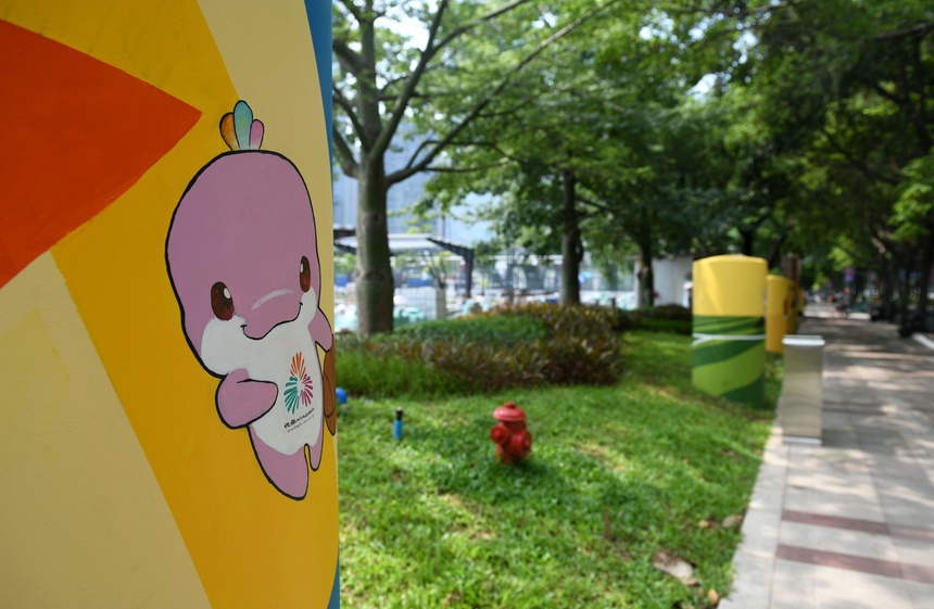 十五運會和殘?zhí)貖W會廣州賽區(qū)執(zhí)委會邀請廣州美術(shù)學院的學生,為天河體育中心外圍有250根立柱創(chuàng)作彩繪圖案,融入體育運動、廣州特色、嶺南文化等元素,為城市公共空間注入活力與人文溫度,讓游客和市民在“轉(zhuǎn)角遇到美”。充分考慮到廣州濕熱多雨,相較平面更易出現(xiàn)裂縫的圓柱體水泥立柱,以及呼應“多彩全運”等因素,立邦為立柱提供從底到面的全體系產(chǎn)品。