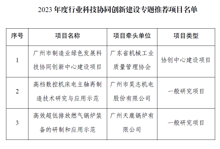 根據(jù)《廣州市科技計劃項目全過程管理簡政放權(quán)改革工作方案》、《廣州市科學技術(shù)局關(guān)于組織2023年度行業(yè)科技協(xié)同創(chuàng)新中心建設(shè)專題項目推薦工作的通知》、《廣州市工業(yè)和信息化局關(guān)于開展2023年度行業(yè)科技協(xié)同創(chuàng)新建設(shè)專題項目推薦的通知》等有關(guān)要求,我局經(jīng)公開征集、專家評審、信用查詢等程序,現(xiàn)將2023年度行業(yè)科技協(xié)同創(chuàng)新建設(shè)專題推薦項目予以公示(排名不分先后),公示期5個工作日。