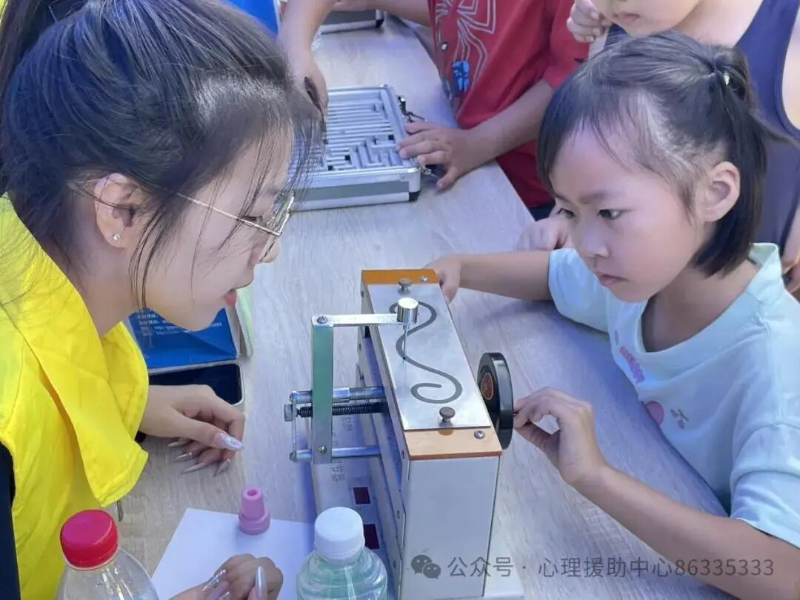 在心理咨詢與心理健康科普宣傳區(qū),多個(gè)互動(dòng)儀器攤位前圍滿了好奇的孩子和家長(zhǎng)。廣州市未成年人中心帶來的智能型注意力集中儀、動(dòng)作穩(wěn)定儀、邏輯思維儀等探索心理或思維過程的儀器,吸引了眾多孩子排隊(duì)體驗(yàn)。在志愿者的耐心指導(dǎo)下,孩子們通過操作儀器,直觀地了解自己的注意力、動(dòng)作協(xié)調(diào)能力和邏輯思維能力等特點(diǎn),在互動(dòng)中探索心理奧秘。家長(zhǎng)也積極參與,親子互動(dòng)增多,感情更加深厚。