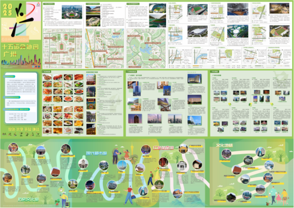 此外,地圖還通過(guò)高清影像與精煉文字相結(jié)合的創(chuàng)意方式,詳細(xì)介紹了全運(yùn)會(huì)各比賽場(chǎng)館的地理位置、建筑規(guī)模及功能特色。這些場(chǎng)館不僅是賽事舉辦的核心場(chǎng)地,更是廣州現(xiàn)代化城市建設(shè)與發(fā)展的重要成果,體現(xiàn)了廣州現(xiàn)代化、國(guó)際化、智能化的城市風(fēng)貌。