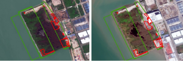 二是用海用島項目“全過程透視鏡”:推動監(jiān)管模式從事后查處向過程防控轉(zhuǎn)變。針對用海用島項目監(jiān)管中面臨的“數(shù)量多、分布廣、發(fā)現(xiàn)難”問題,遙感大模型提供了“批后-過程-成效”全鏈條智能化解決方案,通過將已批復(fù)項目范圍圖斑與全市最新年度遙感影像變化檢測結(jié)果疊加比對,自動篩查超范圍用海、擅自改變用途等違規(guī)風(fēng)險,極大壓縮了人工核查范圍,使監(jiān)管力量聚焦于“變化點”和“風(fēng)險點”,推動用海監(jiān)管從“事后查處”向“過程防控”升級。