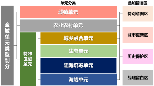 在單元分類上,充分銜接《廣州市國土空間規(guī)劃條例》, 根據(jù)資源空間特征及管控側(cè)重差異,劃分形成城鎮(zhèn)、農(nóng)業(yè)農(nóng)村、城鄉(xiāng)融合、生態(tài)、陸海統(tǒng)籌、海域六大基礎(chǔ)單元,以及特別意圖區(qū)、城市更新區(qū)、歷史保護(hù)區(qū)、戰(zhàn)略留白區(qū)4類疊加管控區(qū)。
