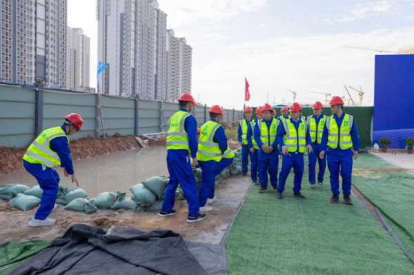 本次應(yīng)急演練分防臺風防汛、防基坑坍塌、消防火災事故等3個項目,通過視頻短片和現(xiàn)場演練的表現(xiàn)形式,將事故災難的嚴重性一一呈現(xiàn),對事故發(fā)生前的預防和事故發(fā)生后科學處置進行了科普,現(xiàn)場演練了事故發(fā)生后的應(yīng)對措施,對防范和處置類似事件具有較強的指導意義?;顒咏Y(jié)束后,覃海寧副書記率隊到項目工地進行安全生產(chǎn)檢查。