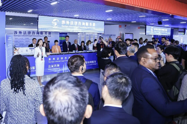 宣介活動結(jié)束后,與會嘉賓參觀了廣交會涉外法律咨詢服務(wù)港,了解服務(wù)港的運(yùn)行模式、服務(wù)范圍及特色舉措。作為市司法局創(chuàng)新載體,該服務(wù)港已連續(xù)六屆進(jìn)駐廣交會,累計(jì)為137個(gè)國家和地區(qū)的客商提供公益法律咨詢3100次,構(gòu)建起“律師+公證+仲裁+調(diào)解+法律查明”全鏈條服務(wù)體系及線上線下協(xié)同、24小時(shí)響應(yīng)機(jī)制,特別設(shè)立粵港澳大灣區(qū)律師服務(wù)專窗,并通過“直播+短視頻”推出多語種法律指南,彰顯廣州涉外法律服務(wù)的專業(yè)性與便捷性。