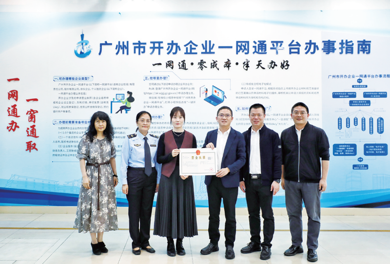 “我是在網(wǎng)上申請辦理營業(yè)執(zhí)照的,半天左右便收到短信通知說執(zhí)照辦好了,今天便過來領(lǐng)取,沒想到居然是白云區(qū)的第70萬張營業(yè)執(zhí)照,太激動(dòng)了。”段女士接過營業(yè)執(zhí)照,高興地說:“還免費(fèi)給我刻了公章,全程不用花一分錢。”她表示,自己是做服裝生意的,白云區(qū)服裝產(chǎn)業(yè)鏈完善,運(yùn)營成本相對較低,交通樞紐十分便利,大大提升了物流效率。