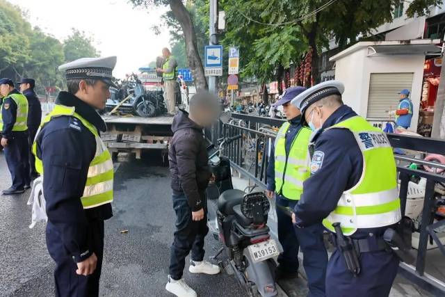 整治行動期間,海珠警方在重點路口、路段設(shè)置多個查車點與巡控崗,查處涉牌、非法改裝、逆行、不按規(guī)定佩戴頭盔及違規(guī)停放等違法行為。