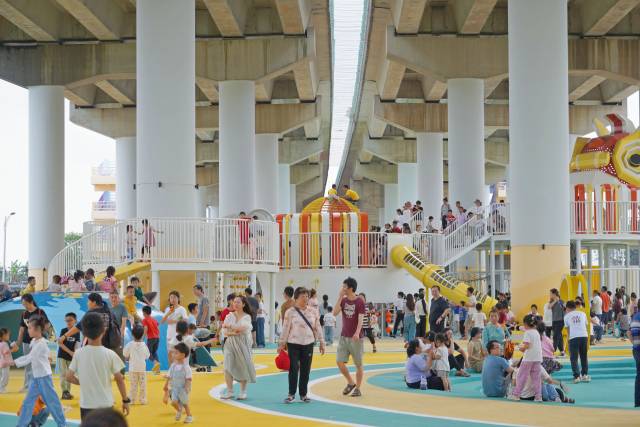 面積約9000平方米,馬克村橋下公園深挖本土文化,以東涌水鄉(xiāng)文化、醒獅文化為靈感來源,打造集文化展示區(qū)、兒童探索區(qū)、綜合健身區(qū)于一體的適合全年齡段的活動休憩空間,成為又一網(wǎng)紅打卡點(diǎn)。