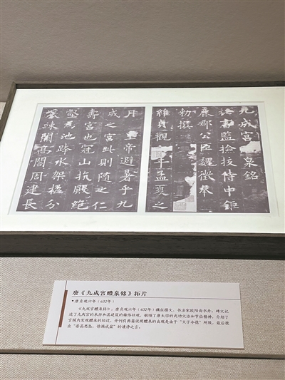 值得一提的是,在廣州國家版本館四大常設(shè)展覽之一的“千秋寫印 華夏有章——中華版本概覽”展區(qū)里,就能欣賞到匾額上“文沁閣”字體的溯源版本——“唐《九成宮醴泉銘》拓片·唐貞觀六年(632年)”,由魏征撰文、書法家歐陽詢書丹。