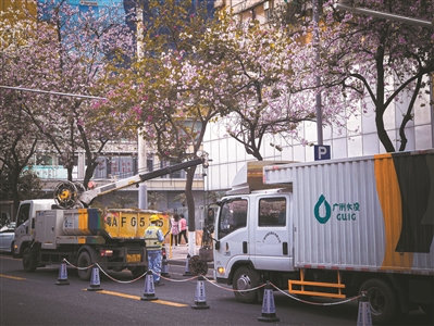 排水公司工作人員在人民北路進(jìn)行機(jī)械清疏作業(yè)