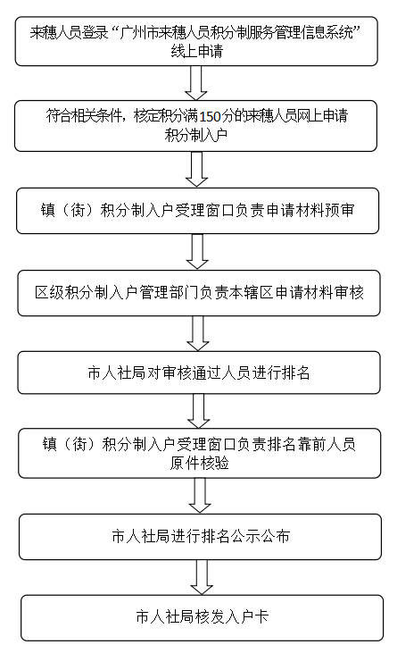 2025年度積分制入戶指標(biāo)1.6萬個,申請積分制入戶人員應(yīng)同時符合以下條件:(一)在廣州市合法穩(wěn)定就業(yè)或創(chuàng)業(yè);(二)年齡在45周歲以下,即1979年1月1日(含當(dāng)天)后出生;(三)持廣州市辦理有效《廣東省居住證》;(四)繳納社會保險滿4年;(五)按照《廣州市積分制入戶指標(biāo)體系及分值表》計算總積分滿150分;(六)近5年內(nèi)未受過刑事處罰。