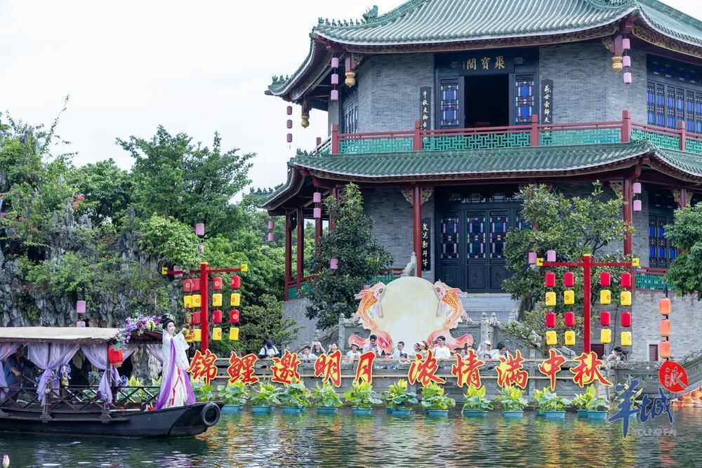 今年寶墨園中秋節(jié)假期的水上花樣浮泳表演《錦鯉邀明月》以“十萬錦鯉、國風(fēng)人魚”元素作為視覺核心,演員在開闊水域表演進(jìn)行演出,由演員扮演的嫦娥攜兩位錦鯉仙子在荔景湖上共同演繹一場錦鯉望月的水上壯麗詩篇,讓廣大游客能沉浸式體驗(yàn)“水月中秋奇幻之旅”。
