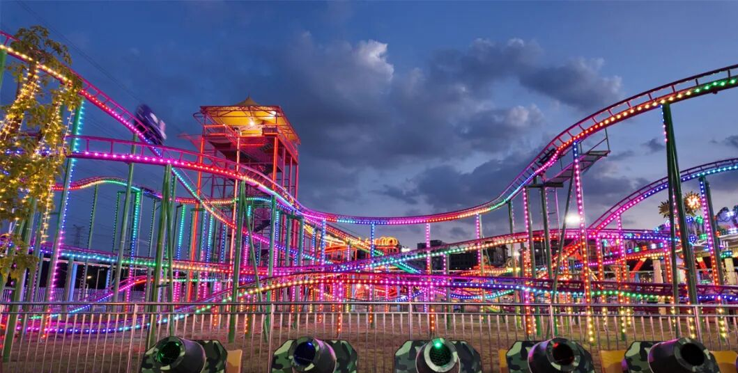 大型空中游樂項(xiàng)目:海盜船、大擺錘、過山車、高空飛翔、太空漫步等;