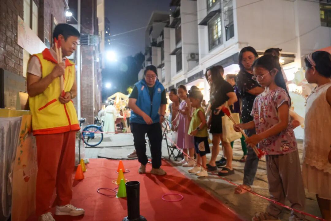 當(dāng)天下午五時(shí)許,活動(dòng)在熱鬧的游園會(huì)中開(kāi)場(chǎng)。會(huì)場(chǎng)入口處,一盞盞寫(xiě)有謎題的傳統(tǒng)紙燈籠隨風(fēng)輕搖,構(gòu)成了一條充滿古風(fēng)雅韻的“月夜燈謎”長(zhǎng)廊。居民們或凝神思索、或笑語(yǔ)討論,猜中者喜笑顏開(kāi),獲得一盞心儀的彩燈。