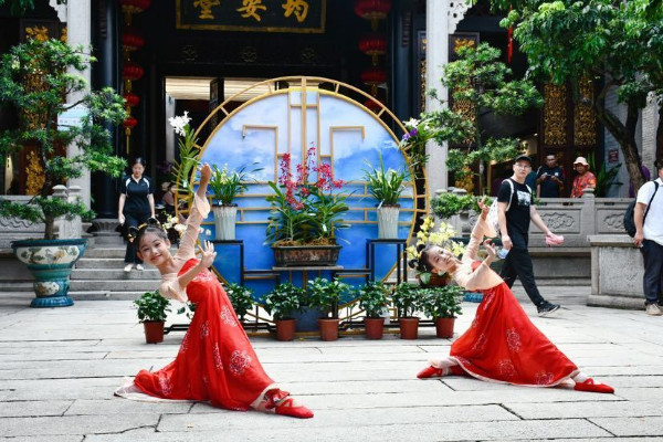“國風雅韻”沉浸式互動則將為游客帶來豐富視聽體驗。10月1日國慶當天,余蔭山房聯(lián)合廣東省朗誦協(xié)會、旗袍美學藝術團及音樂舞蹈曲藝團,舉辦“激情全運會 活力大灣區(qū) 魅力新番禺——‘四季回響’慶國慶迎中秋朗誦音樂會”,通過朗誦、舞蹈、音樂等形式禮贊家國;10月2日至3日,廣州市粵武體育俱樂部將帶來武術快閃,拳法、太極、刀槍劍戟輪番亮相,展現(xiàn)中華武術剛健之美;10月4日至5日,國風快閃接棒登場,身著國風服飾的表演者將通過舞蹈、古箏彈奏等形式,帶領游客“穿越”古今。