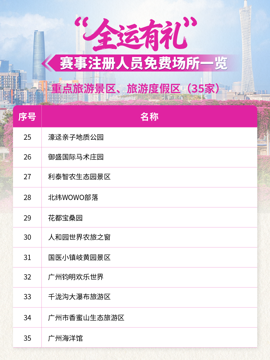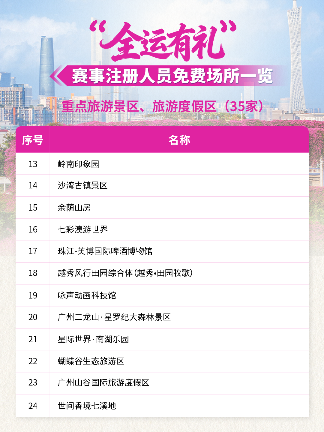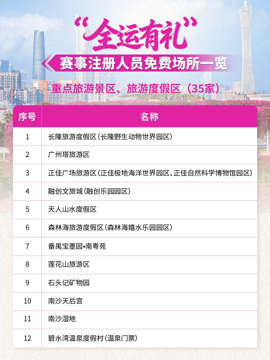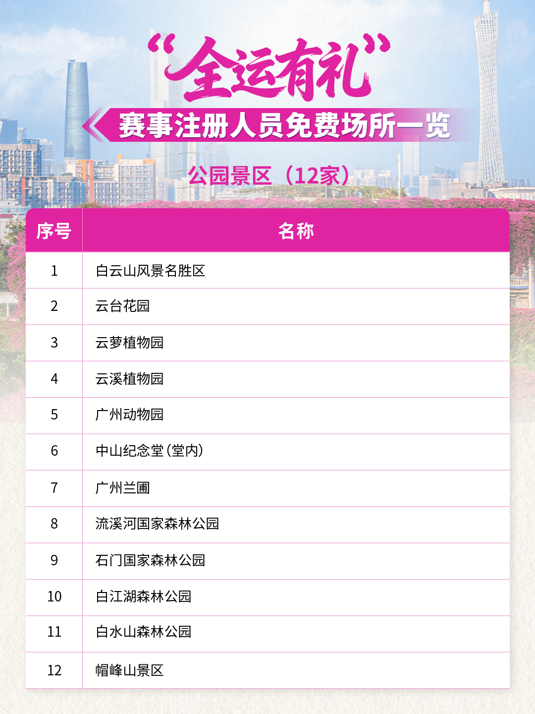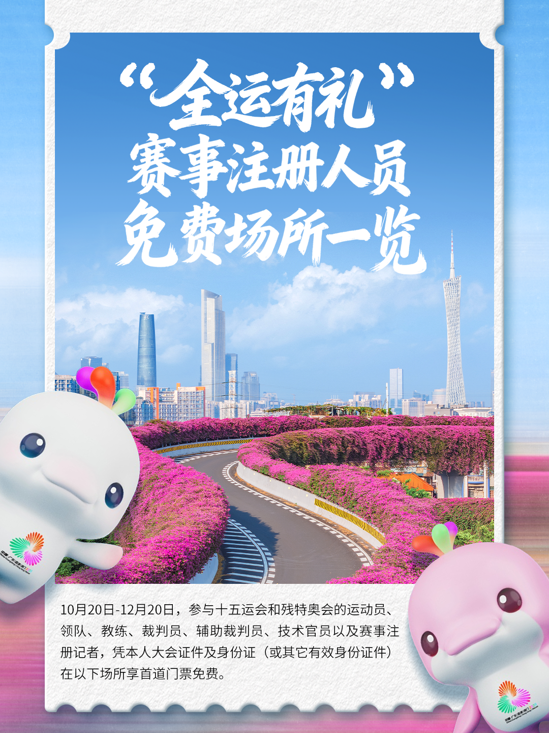 全運倒計時!59家景區(qū)/場所聯(lián)合獻禮!10月20日-12月20日期間參與十五運會和殘?zhí)貖W會的運動員、領(lǐng)隊、教練、裁判員、輔助裁判員、技術(shù)官員以及賽事注冊記者,憑本人大會證件及身份證(或其它有效身份證件),在這些場所可享首道門票免費!