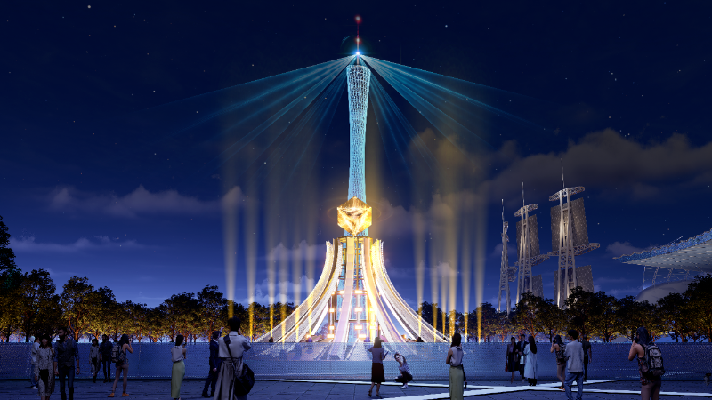 三塔聯(lián)動(dòng)燈光秀效果圖