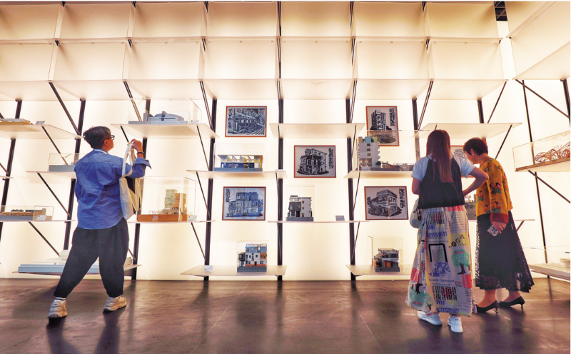 觀眾參觀國內(nèi)外優(yōu)秀建筑作品模型。