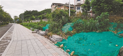 改造后:道路沿線種植花草苗木,單一的水泥墻被賦予了新的色彩,道路沿線景觀變得生動有內(nèi)涵。