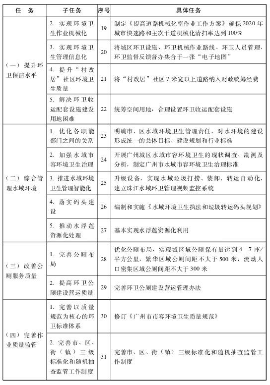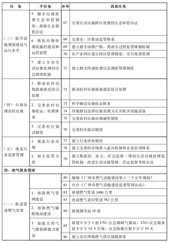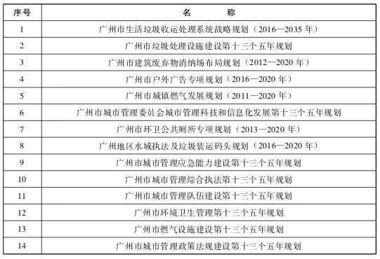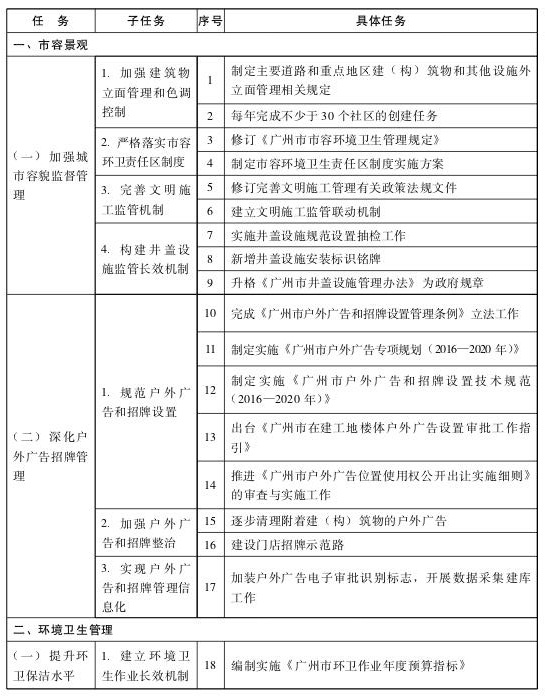 “十三五”廣州市城市管理任務匯總表
