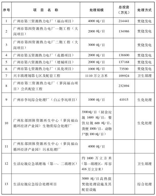 (三)垃圾終端處理設施建設取得重大突破。建成資源熱力電廠1座(廣州市第一資源熱力電廠二分廠,處理能力2000噸/日)、衛(wèi)生填埋場1座(興豐生活垃圾衛(wèi)生填埋場第六區(qū))、餐廚垃圾處理廠1座(廣州市餐廚廢棄物循環(huán)處理試點項目,處理能力200噸/日),全面啟動第三、第四、第五、第六、第七資源熱力電廠,興豐生活垃圾衛(wèi)生填埋場七區(qū)及配套工程,以及李坑綜合處理廠、生物質(zhì)綜合處理廠、增城區(qū)餐廚廢棄物收運系統(tǒng)及綜合處理項目等生活垃圾終端處理設施建設,為破解“垃圾圍城”奠定了基礎。