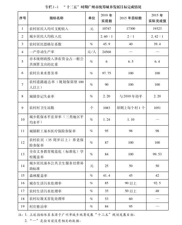 《廣州市統(tǒng)籌城鄉(xiāng)發(fā)展第十三個五年規(guī)劃》指標體系及說明