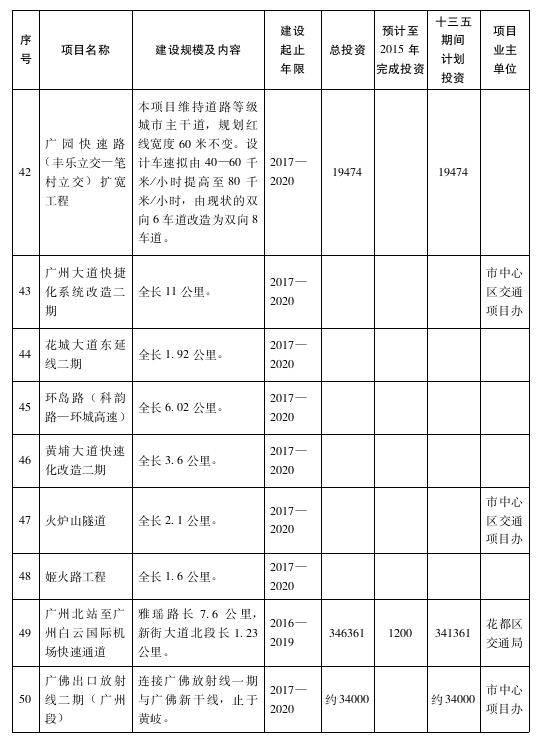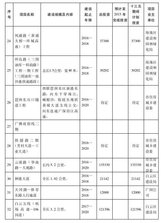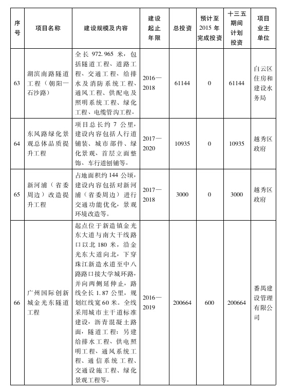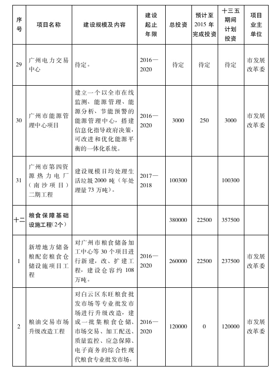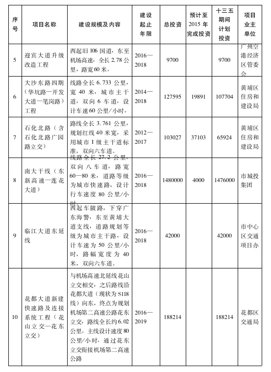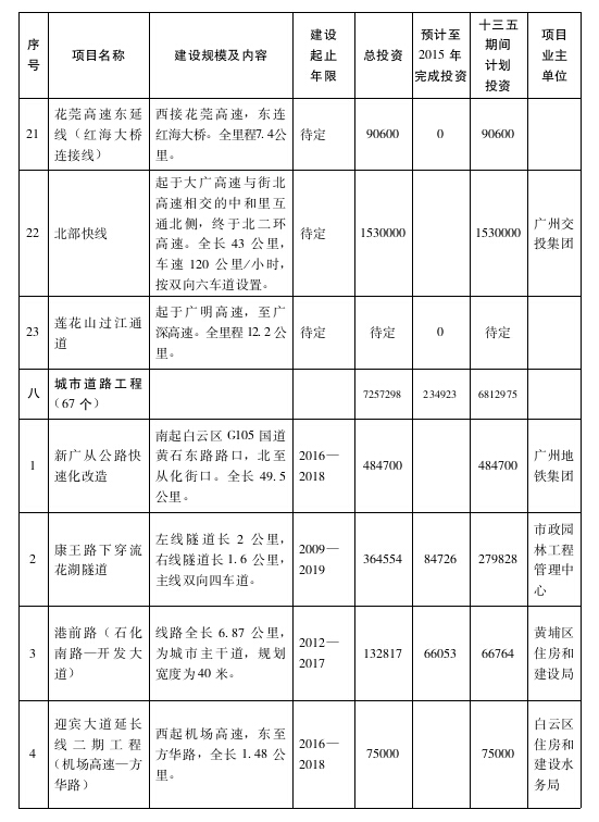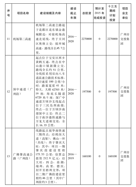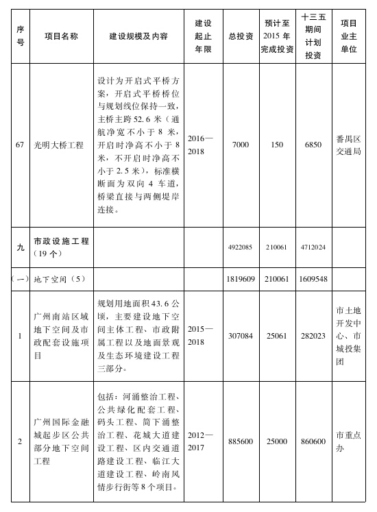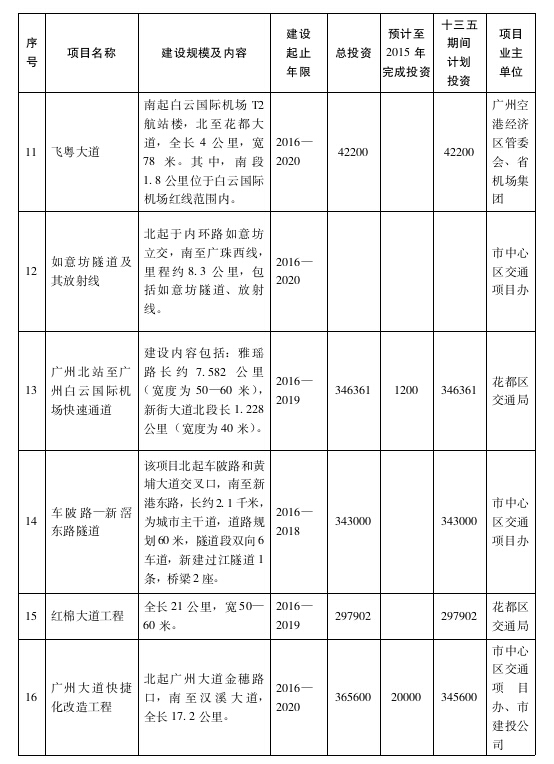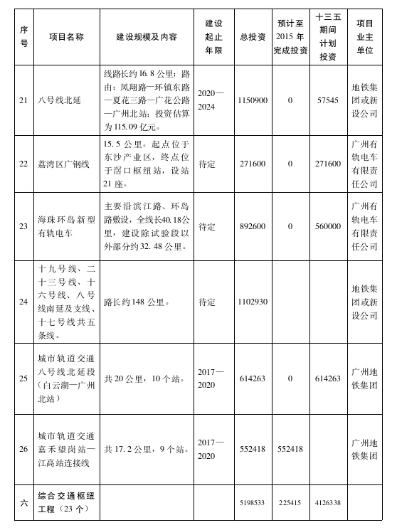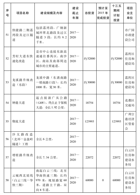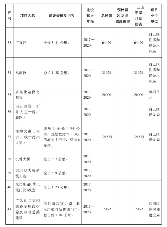 廣州市城市基礎(chǔ)設(shè)施發(fā)展“十三五”規(guī)劃重大項目表