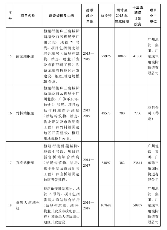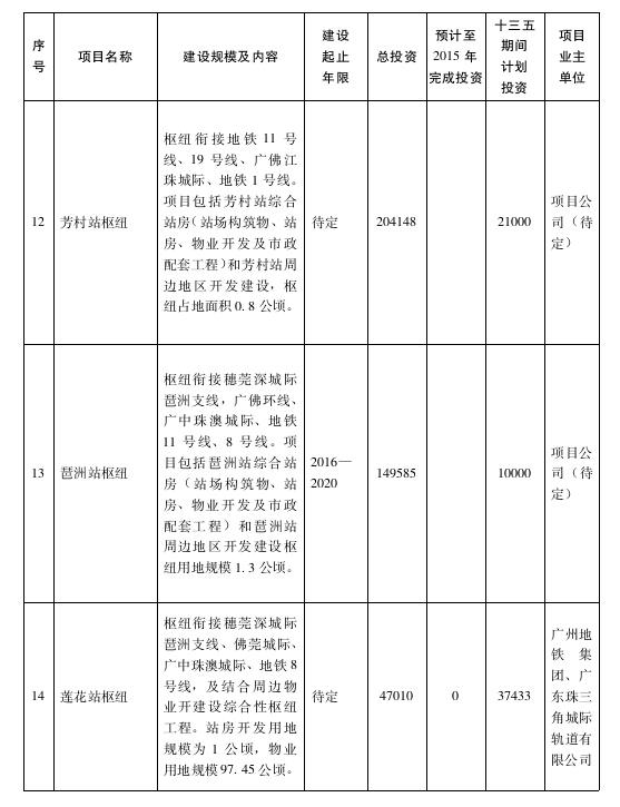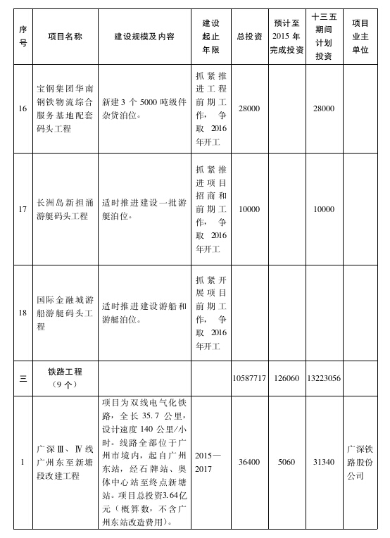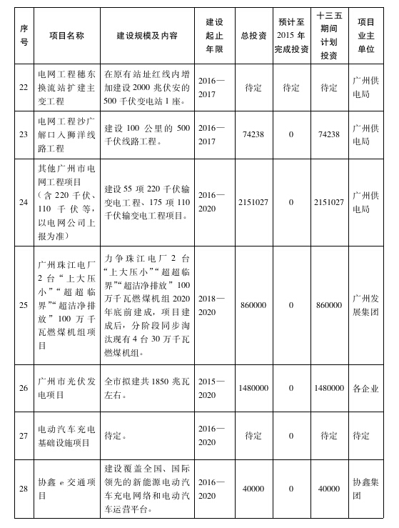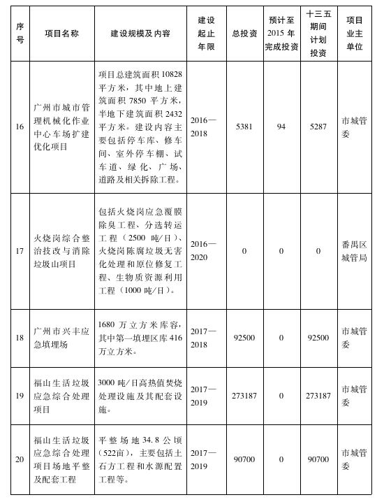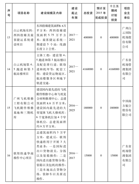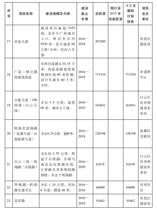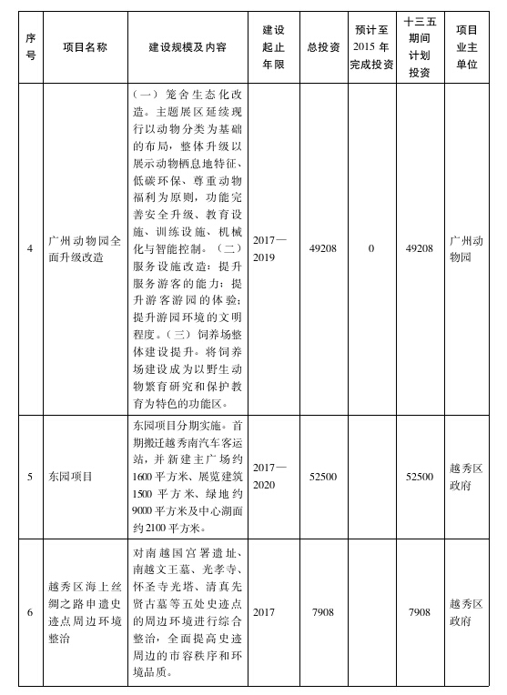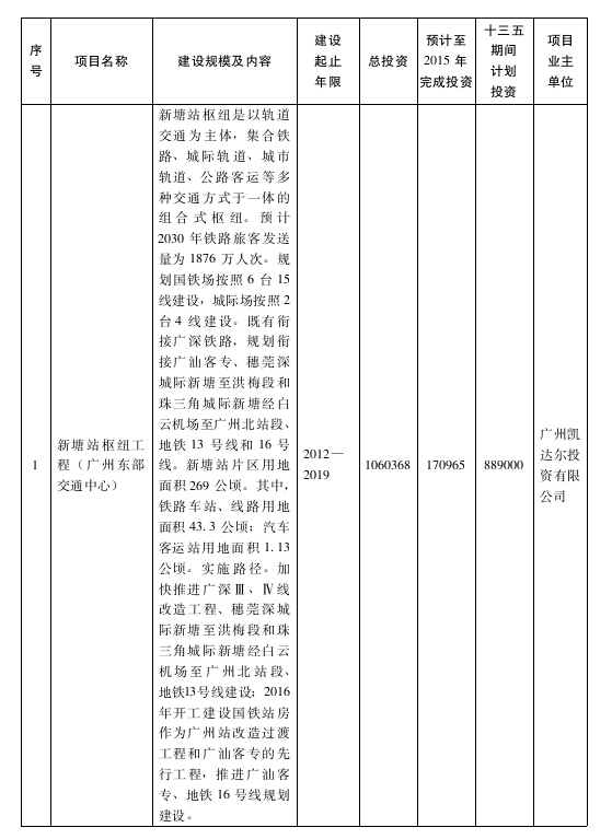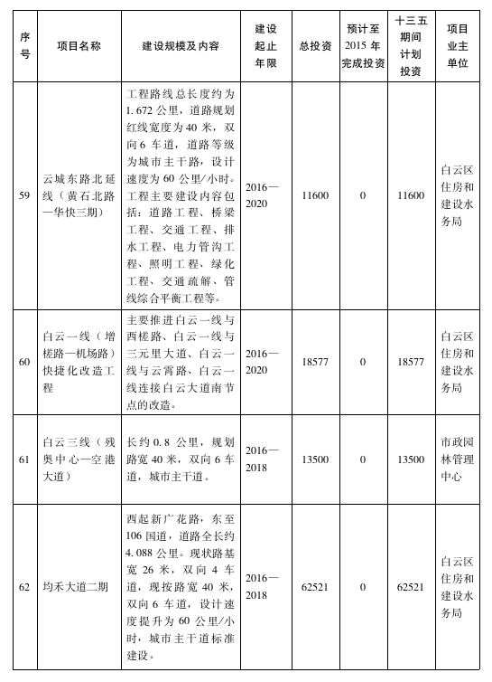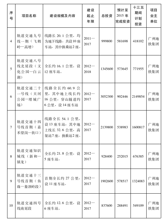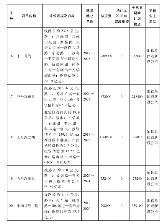 廣州市城市基礎(chǔ)設(shè)施發(fā)展“十三五”規(guī)劃重大項目表