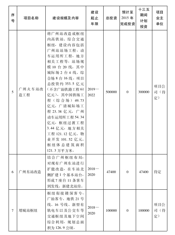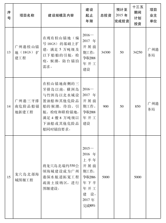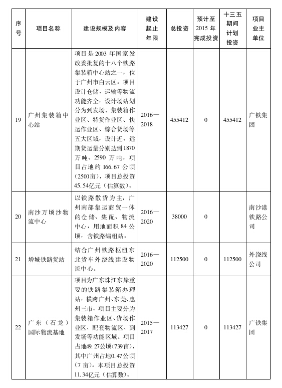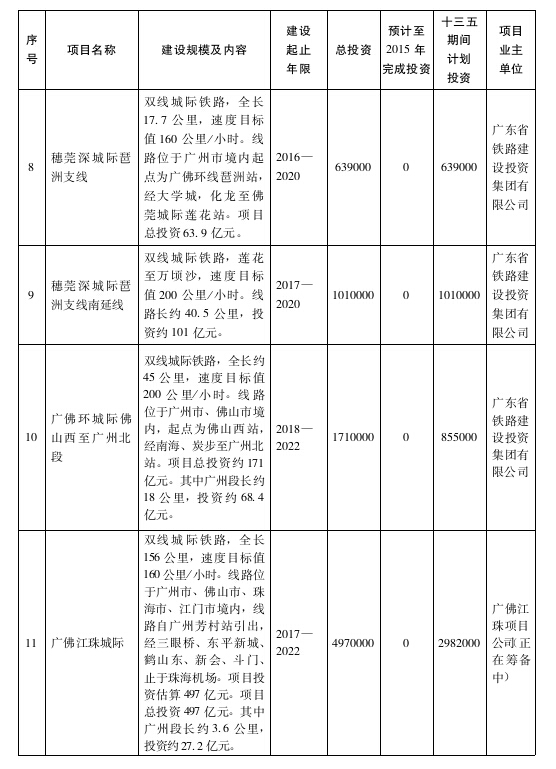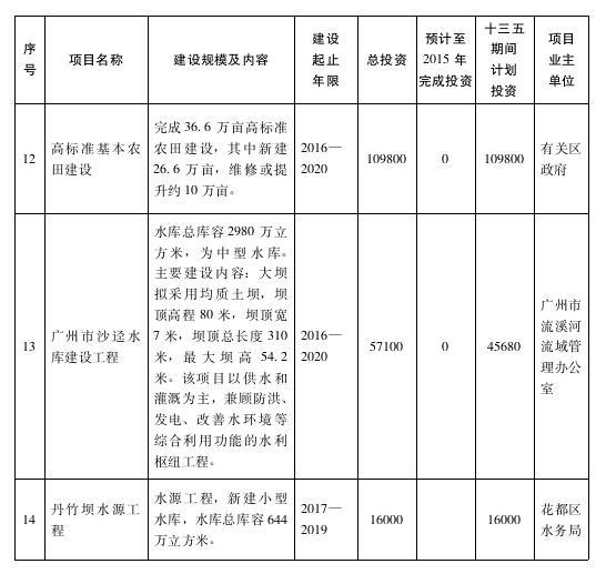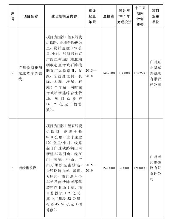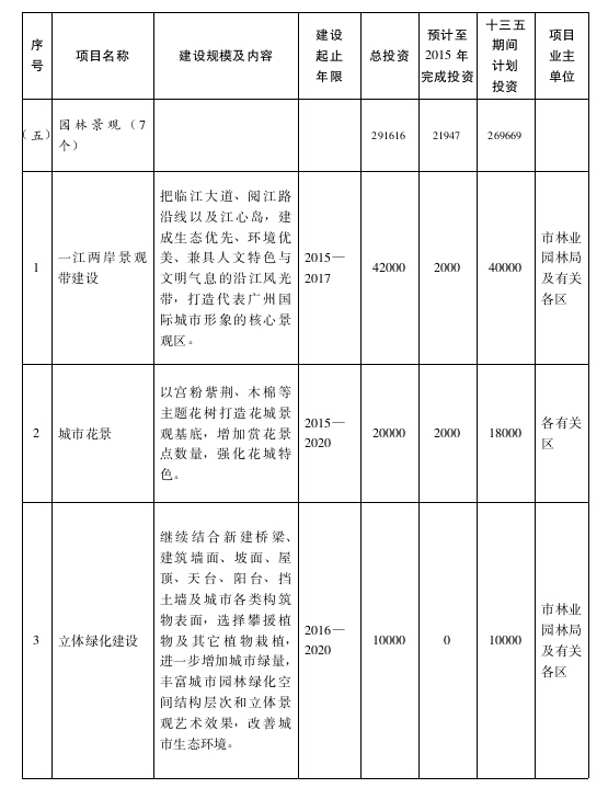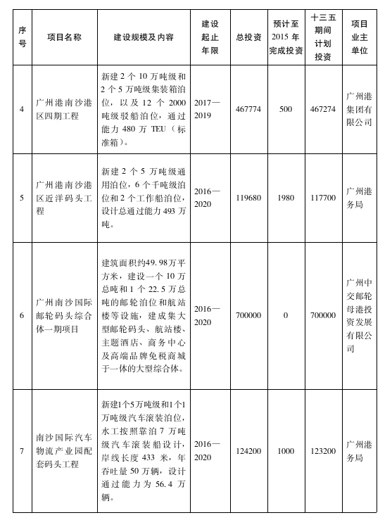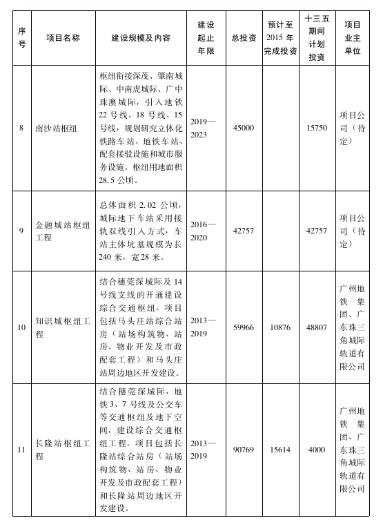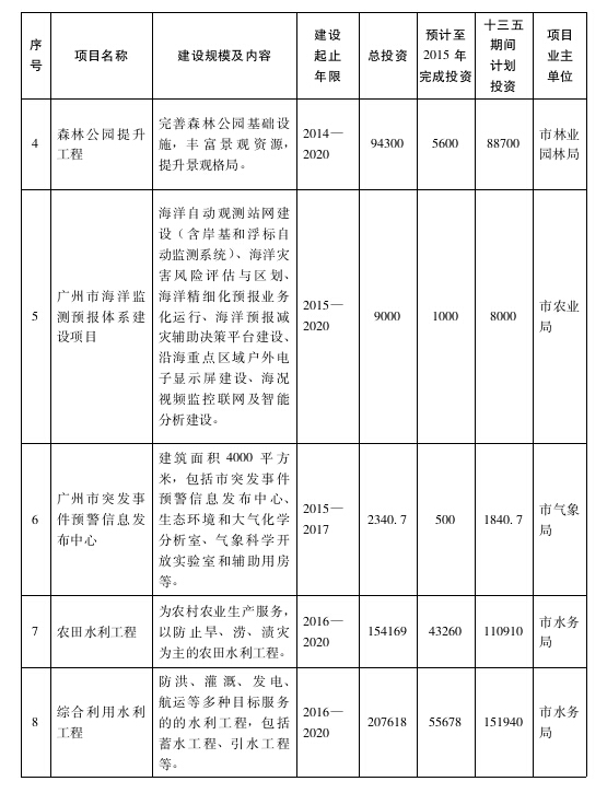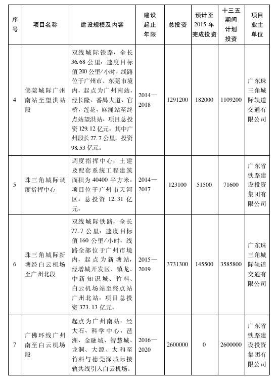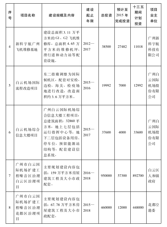 廣州市城市基礎(chǔ)設(shè)施發(fā)展“十三五”規(guī)劃重大項目表