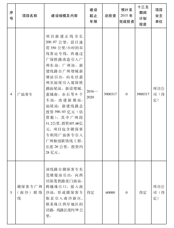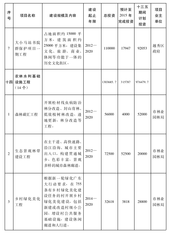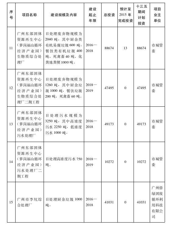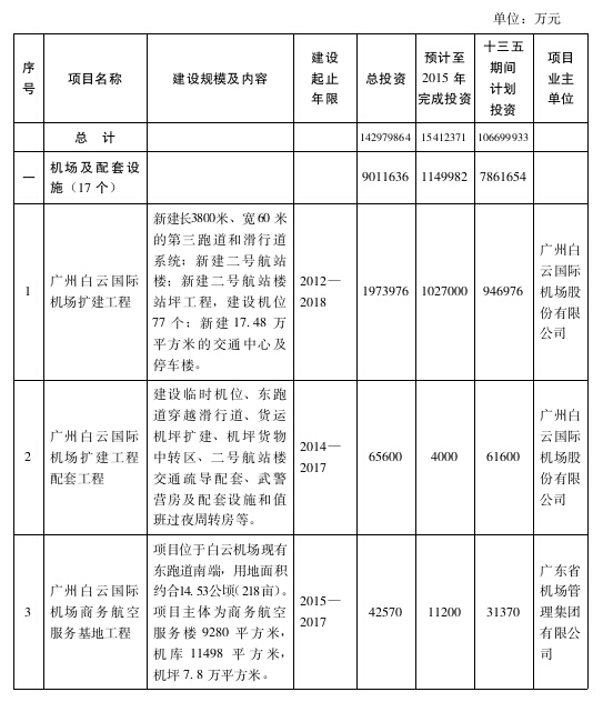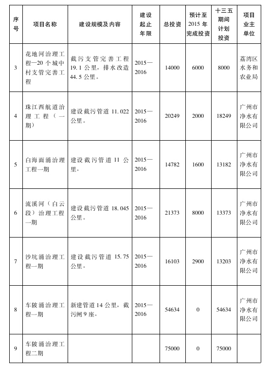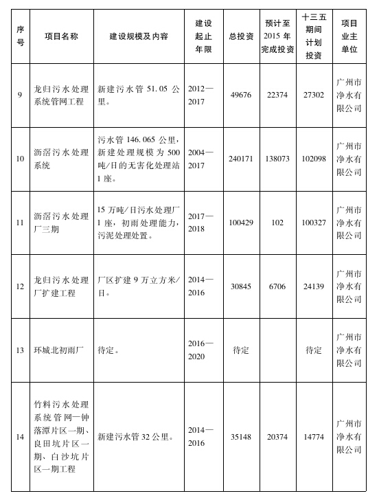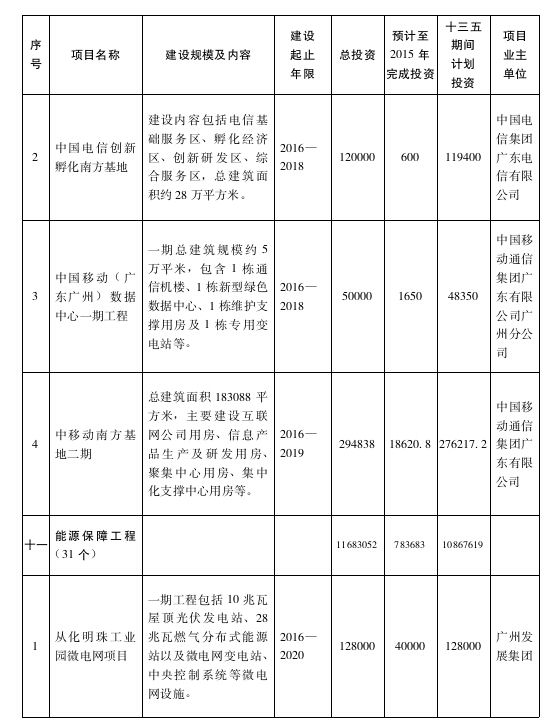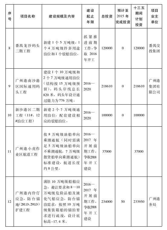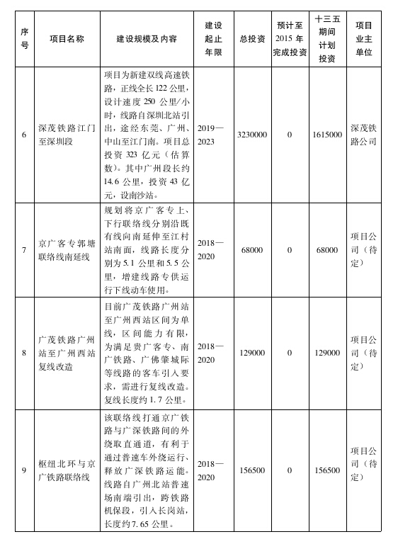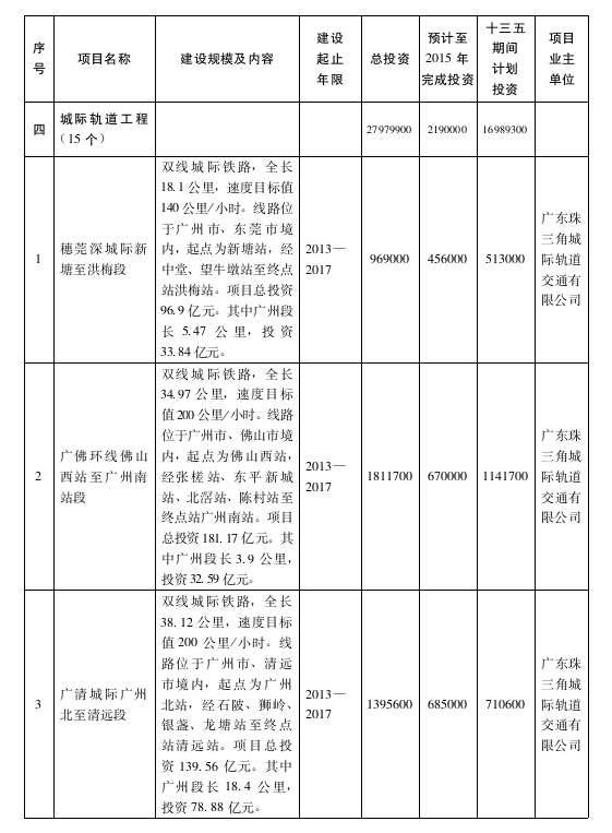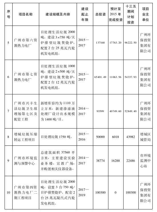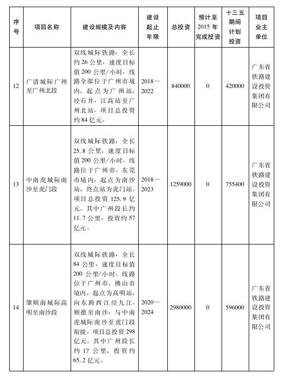 廣州市城市基礎(chǔ)設(shè)施發(fā)展“十三五”規(guī)劃重大項目表