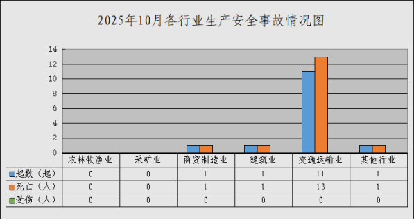據(jù)統(tǒng)計(jì),10月,全市發(fā)生生產(chǎn)安全事故14起、死亡16人,同比事故起數(shù)下降17.6%、死亡人數(shù)上升6.7%,其中,發(fā)生1起生產(chǎn)安全道路運(yùn)輸較大事故,死亡3人。