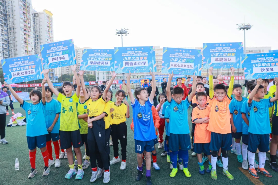 頒獎環(huán)節(jié)中,廣州市體育局、香港賽馬會、廣州市群眾體育指導中心及廣州市足球協(xié)會的相關領導嘉賓共同為獲獎隊伍頒發(fā)了“市長杯”特制的獎杯與獎牌。